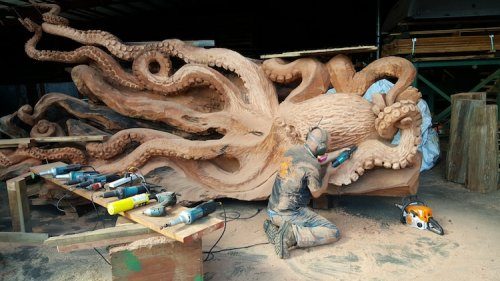 Этот гигантский осьминог вырезан из цельного куска красного дерева, и он выглядит потрясающе!
