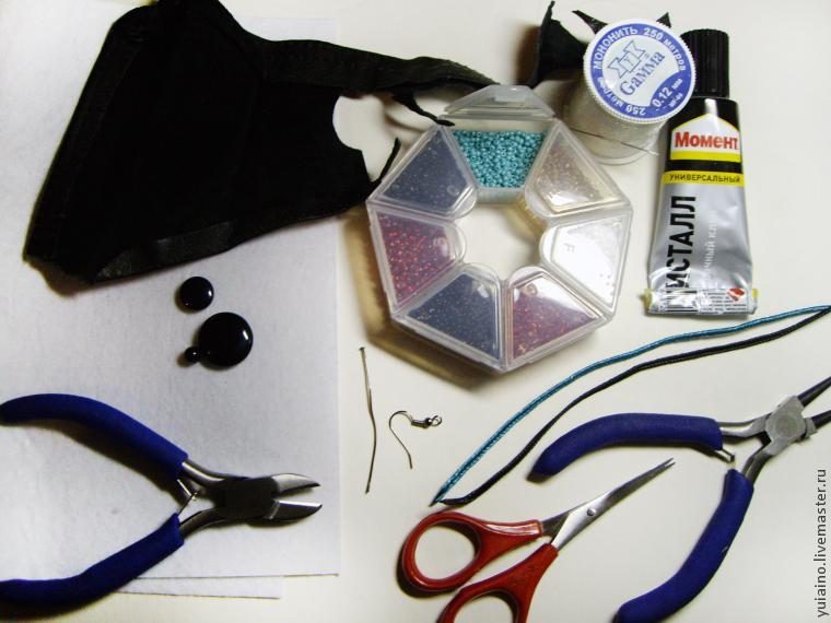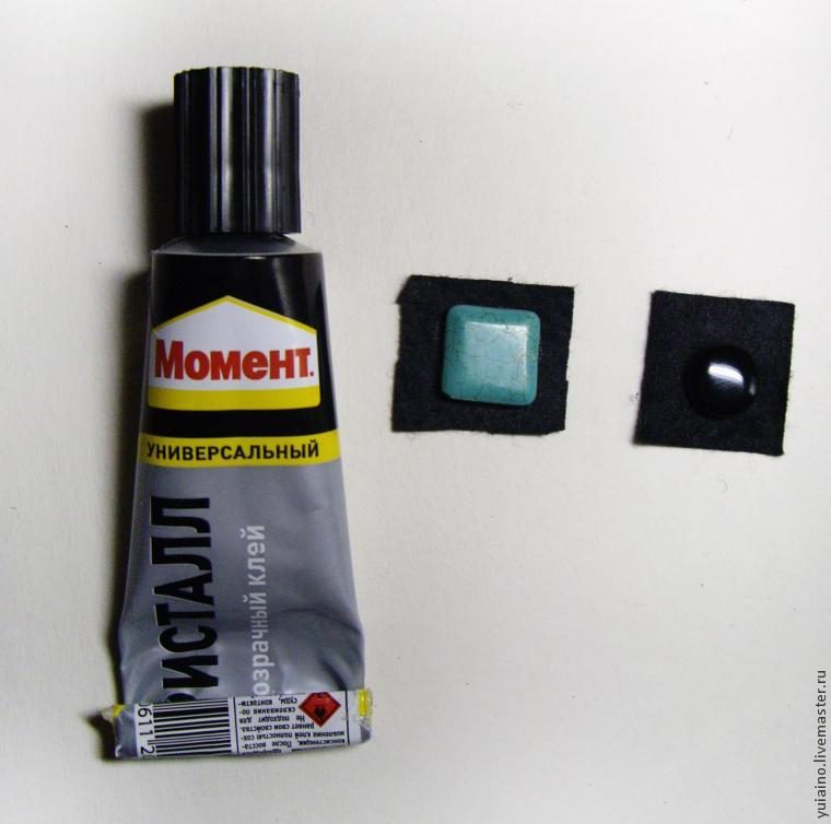1. Приклеиваем кабашоны на фетр при помощи клея. Здесь используется бирюза и стеклянная плоская бусина.