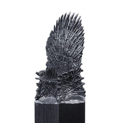 Недавно телевизионная сеть HBO Asia выпустила удивительный набор тематических карандашей в стиле «Игры престолов», грифели которых вырезаны русским художником Салаватом Фидаем в форме символа каждого Дома, Белых Ходоков, драконов и Железного трона. Для того, чтобы вырезать один такой объект, Фидаю требуется от 6 до 12 часов, а также профессиональный резец, увеличительное стекло и микроскоп. Художник говорит, что самым сложным объектом в коллекции был трон, на изготовление которого потребовалось три недели. Естественно, объекты из «Игры престолов» — это только последние работы Фидая, который также вырезал крошечные архитектурные объекты, супергероев, других вымышленных персонажей и т.п.