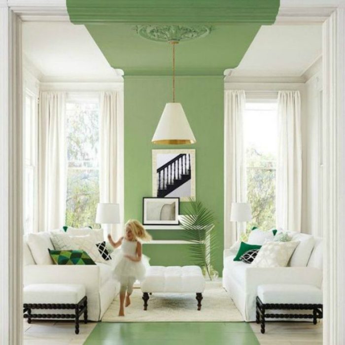 Используйте краску для зонирования площади своей комнаты. Такая хитрость позволит грамотно расставить акценты в интерьере и здорово освежит внешний вид комнаты.
