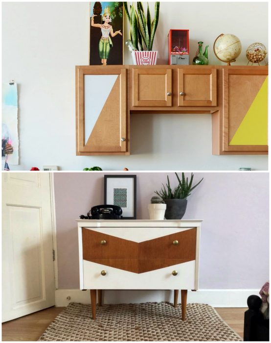 Полная или частичная покраска старой мебели позволит вдохнуть жизнь в наскучившие предметы обстановки. Помните, что с помощью белой краски можно освежить любой предмет мебели, а с помощью ярких цветных деталей — превратить вещь в нечто эксклюзивное и уникальное.