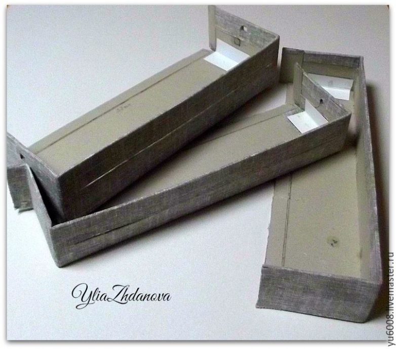 Так как переплетный картон трудно биговать, я решила просто выбрать в месте сгиба паз, для этого надрезала по 0.3 мм полоску (главное не прорезать насквозь) и убрала верхний слой картона, сгибать стало легко.