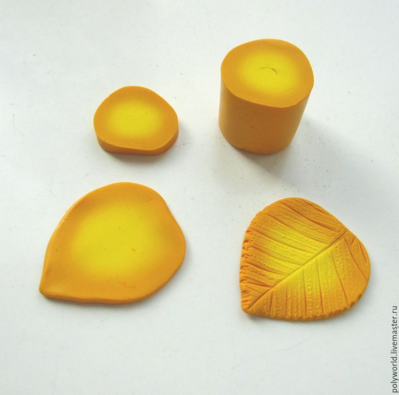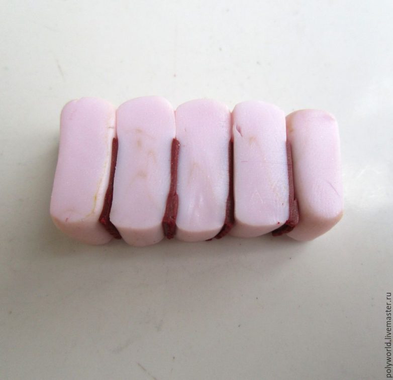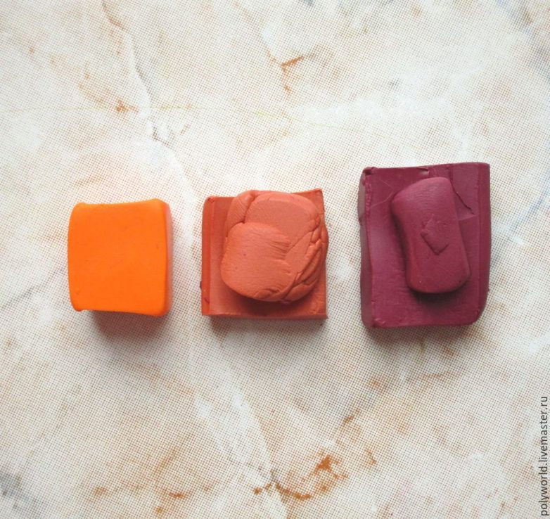 Сделаем заготовку с плавным переходом цвета. Плавный переход — очень известный технический приём в лепке из полимерной глины, многократно описанный в разных мастер-классах. Тем не менее покажу достаточно подробно, как я это делаю.