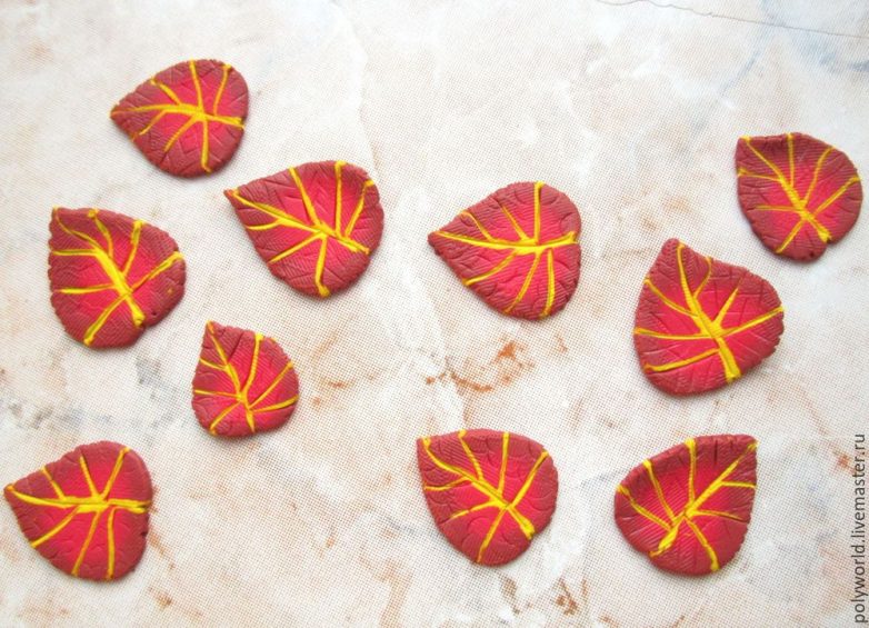 Надеюсь, мой мастер-класс был интересен и полезен! И хотя рассчитан он для мастеров, имеющих основные навыки работы с запекаемой полимерной глиной, отдельные элементы его могут попробовать выполнить и новички — например, потренироваться с переходом цвета и сделать какой-то из листочков. Удачи всем в творчестве!