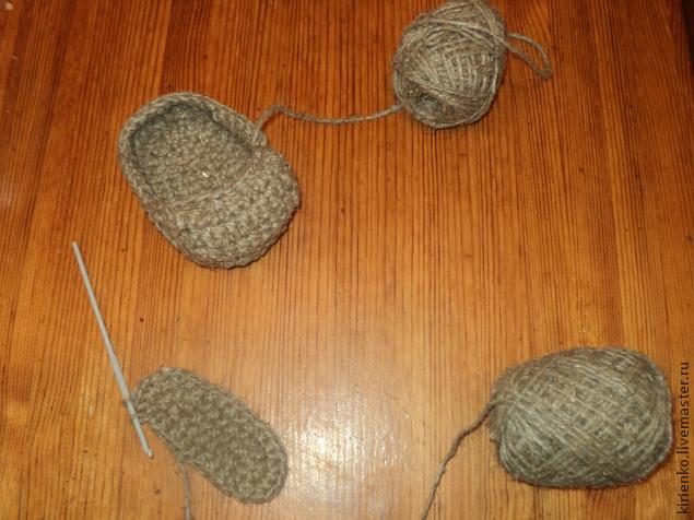 Отжимаю и отправляю сушиться. А пока приступаю к изготовлению обуви для Кузьмы. Лапти я буду вязать из толстого шпагата.