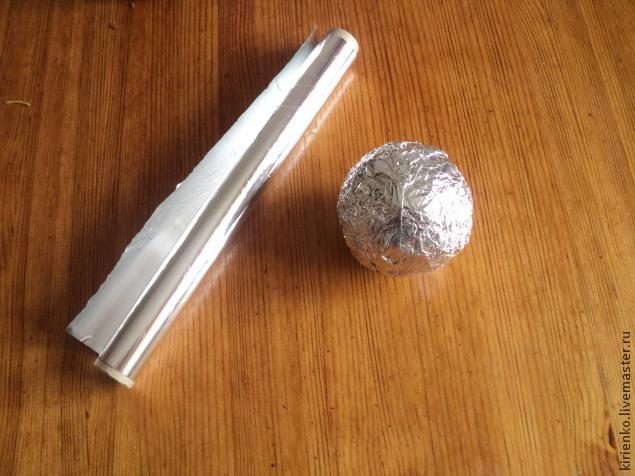 Начинаем. Хочу Кузю не маленького, а эдакого Кузьму, поэтому шарик из фольги для головы сформирую побольше. Получился диаметром 10 см.