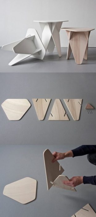 Очень устойчивая и нескучная деревянная табуретка необычной формы, которую легко можно сделать своими руками.