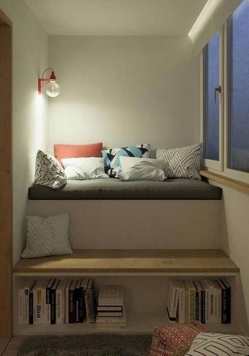 Когда закрытый балкон хорошо утеплён, он может выступить в роли дополнительной полноценной комнаты, например, спальни. Так будет решён вопрос расширения жилой площади в тесной однушке. Многие российские дизайнеры полюбили этот приём и часто используют его в своей работе.