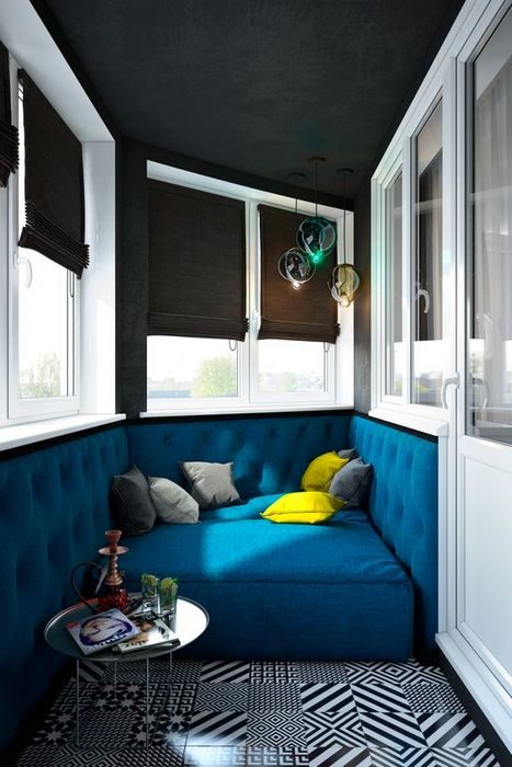 Иногда, после сложного рабочего дня хочется убежать подальше от суеты, снять напряжение и просто отдохнуть. Если обустроить балкон или лоджию должным образом, то несложно превратить его в то самое место для расслабления и приятного времяпрепровождения. Для этого понадобится комфортная мягкая мебель, подушки, приглушенное освещение, декоративные свечи для атмосферы. Цвета, применённые в оформлении балкона, не должны эмоционально давить, вызывать агрессию или чрезмерно бодрить. К таким активным оттенкам относятся жёлтый, яркий розовый, красный, оранжевый.