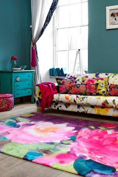 Яркий ковёр с крупным цветочным принтом.