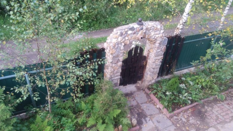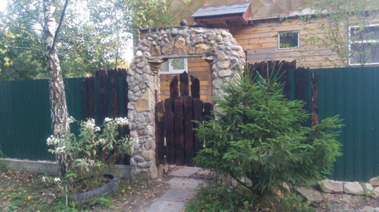 Так как забор из профнастила плохо гармонирует с натуральным камнем и деревом, пришлось сделать небольшой переход из стиля в стиль.