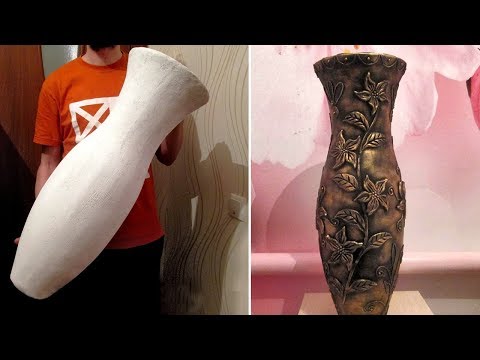 Напольная ваза своими руками из картона — это очень красивая поделка. Ваза своими руками прекрасно украсит ваше жилье.