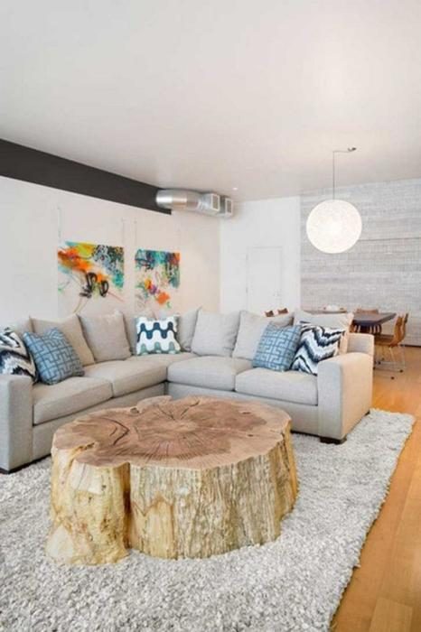 Из обычного необработанного пня можно создать по-настоящему уникальный дизайнерский журнальный столик.