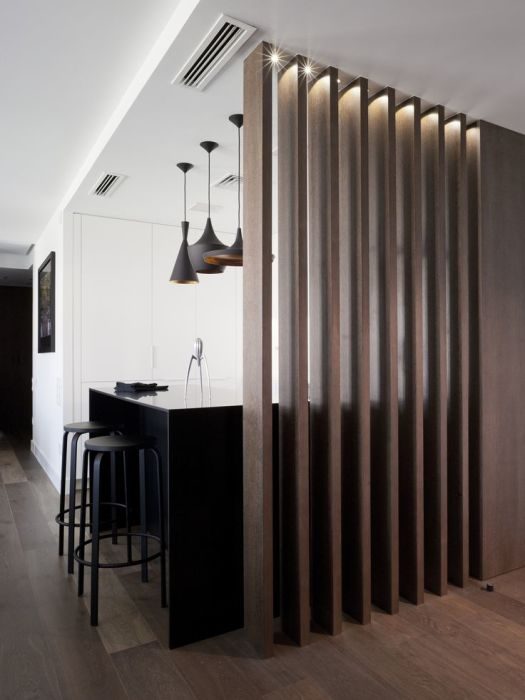 Зонирование пространства с помощью деревянной перегородки — лучшее решение для оптимизации малогабаритного пространства.