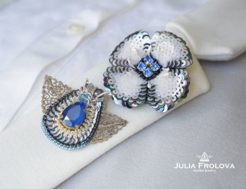 Юлия Фролова из Челябинска тоже вдохновляется этой тематикой, но создаёт нечто уникальное! Используя такие материалы, как японские бусины, драгоценные камни, жемчуг и кристаллы Сваровски, она дарит жизнь изысканным жукам, стрекозам и бабочкам, которые на самом деле являются великолепными брошами.