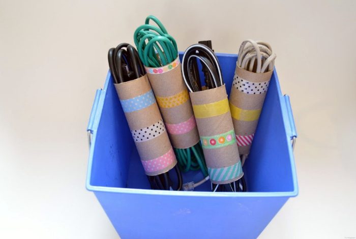 Картонные втулки можно использовать в качестве индивидуальных упаковок для шнуров и различных кабелей. Такая хитрость позволит навести порядок в проводах, не давая им спутаться или перегнуться.