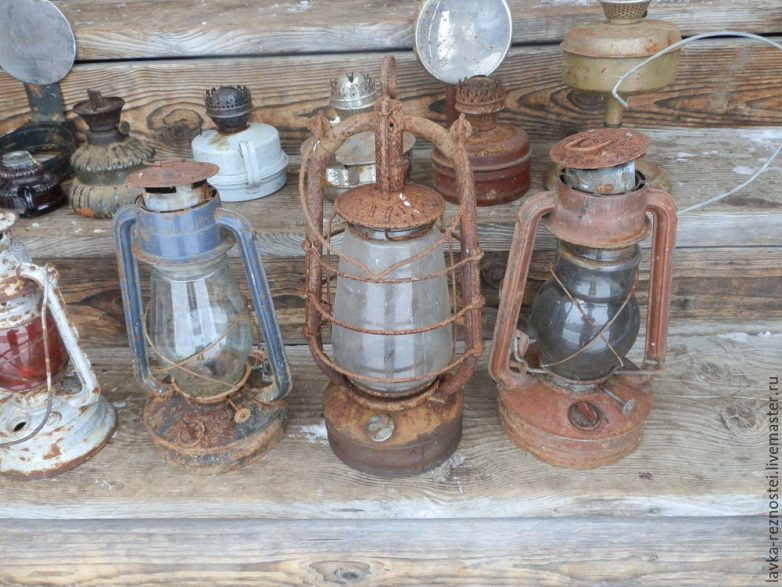 Из коробки достали все керосинки, было их более десятка. Все побитые, грязные, ржавые, без нужных деталей.