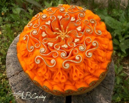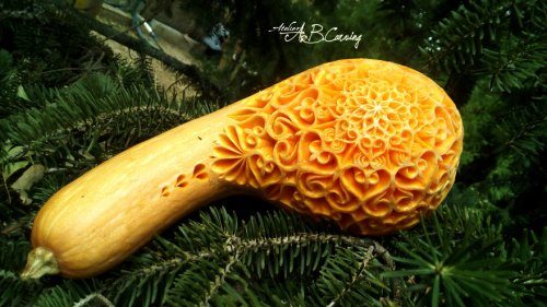 Ангел Боралиев (Angel Boraliev) из Болгарии увлекается карвингом (художественной резкой по овощам и фруктам) и считает, что резные тыквы на Хэллоуин не обязательно должны быть жуткими и вызывать приступы страха.