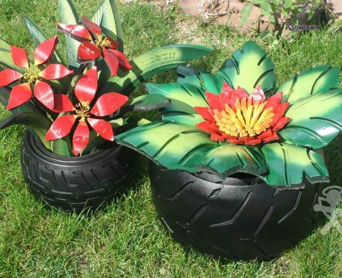 Старые автомобильные покрышки, исправно отслужив свой срок, могут обрести новую жизнь, став декоративными кашпо.