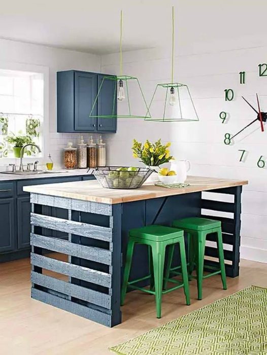 Покрашенные деревянные поддоны прекрасно подойдут для создания модного и необычного кухонного островка, который станет стильной и функциональной деталью современной кухни.