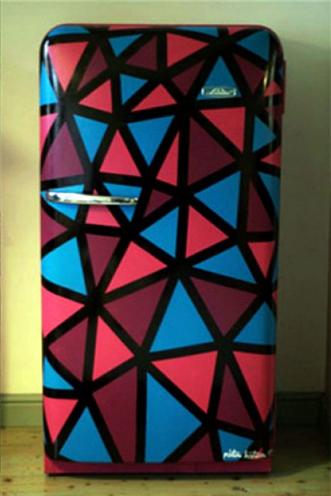 Яркий декор старого холодильника.
