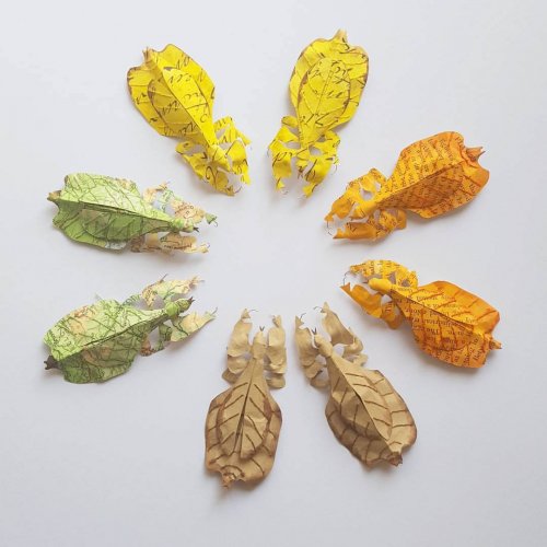 Ботанический художник по бумаге Кейт Като (Kate Kato) использует найденную и переработанную бумагу для создания сложных диорам, посвящённых природе.