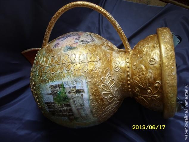 Вот дальнейшее превращение, наклейка салфеток, декупажных карт, пейп-арт, скорлупа, формирование листочков.