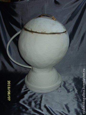Потом сделала подставку, для этого пригодилась пластмассовая, уже вышедшая из строя миска, ее тоже приклеила на горячий клей к основанию глобуса, а потом все вместе оклеивала.