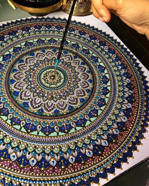 Медитативные произведения искусства занимают несколько дней работы, а результаты своего творчества, равно как и видеоролики с процессом работы, художница публикует в своём аккаунте в Instagram.