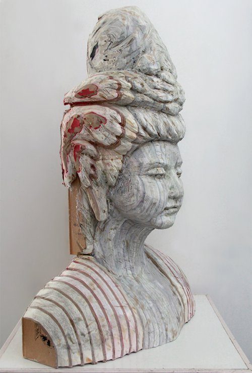 Используя ненужные, бесполезные вещи, такие как, например, старые телефонные книги, художник вдыхает новую жизнь в мусор и бумажные отходы. Безжизненные листы, скреплённые вместе, превращаются в скульптуры, обретая вторую жизнь.