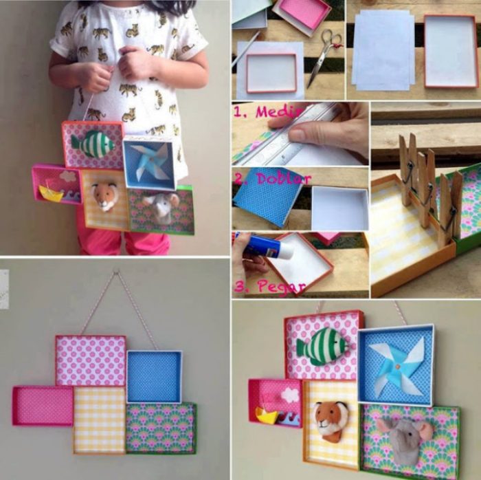 Используйте крышки от обувных коробок для создания чудесной и оригинальной композиции, которая прекрасно подойдет для украшения стен в детской.