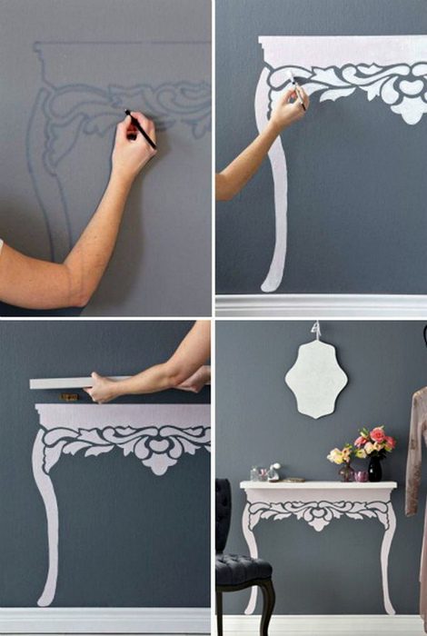 Консольный столик с нарисованными ножками.