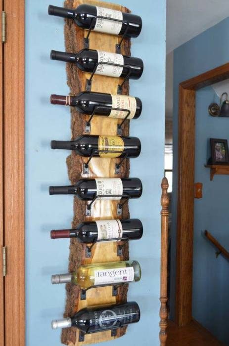 Настенные полки для винных изделий из необработанной древесины сейчас на пике популярности.