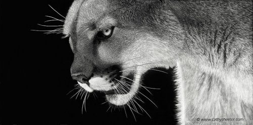 Художница дикой природы Кэти Шитер (Cathy Sheeter) создаёт гиперреалистичные портреты животных в технике скретчборд.