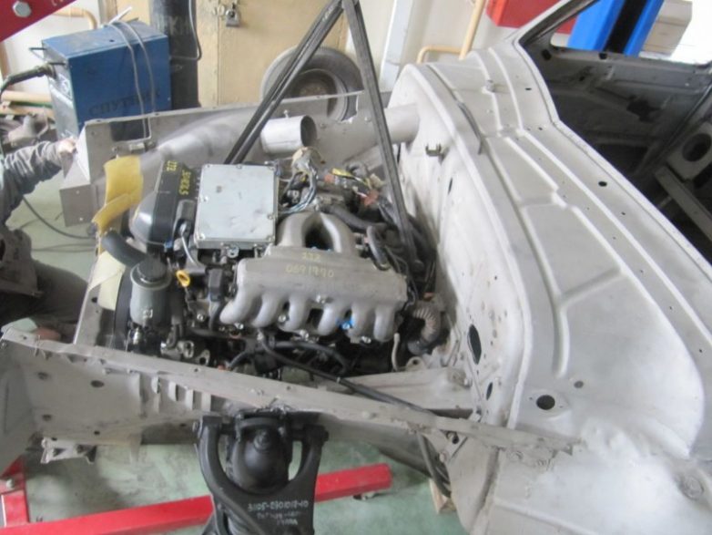 Далее мы перешли к проверочной установке двигателя и передней подвески. Было решено поставить двигатель 2JZ-GE, объемом 3 литра и мощностью 225 л.с., АКПП.