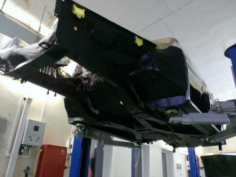 Маляры провели обработку кузова специальным травящим грунтом, не допускающим коррозию металла.