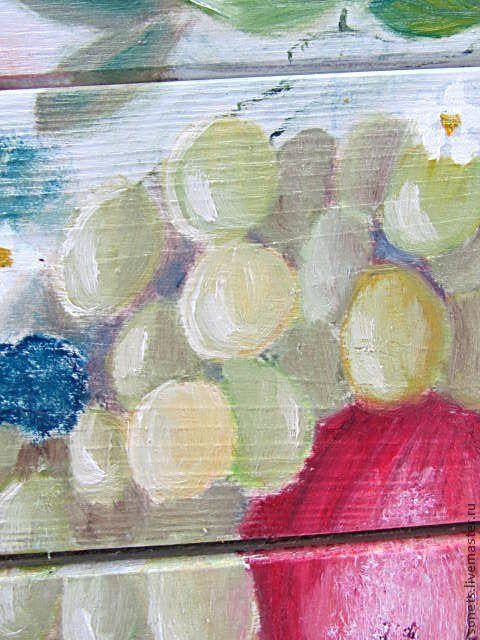 5 Рис. 15- Белилами усиливаем блики, на ягодах, перекрытыми другими, усиливаем тень более темной краской (средний тон). Самый темный тон у нас под кистью винограда, между ягодами