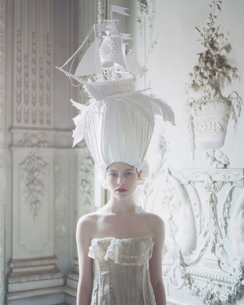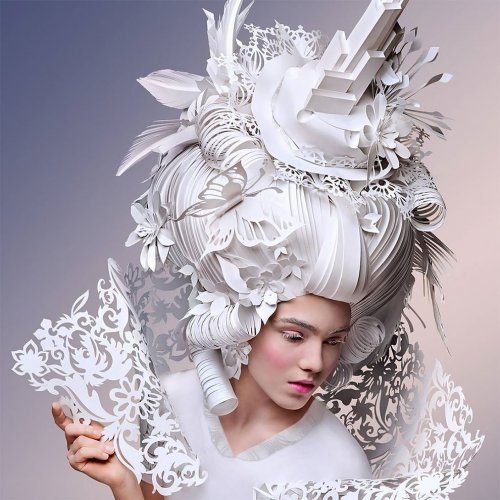 Следуя аналогичному эстетическому стилю декоративных париков периодов барокко и рококо, художник по бумаге Ася Козина создаёт богато украшенные головные уборы, которые отдают дань уважения одному из самых странных предметов роскоши и стильных трендов в истории.