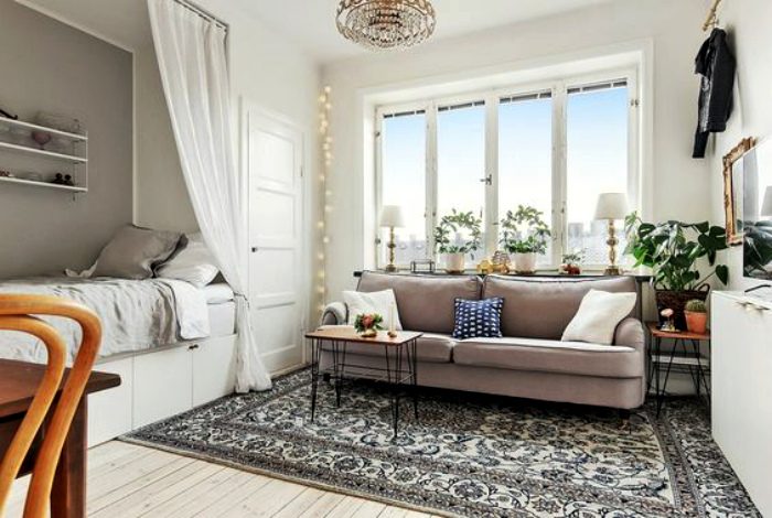 Многие знают не понаслышке, что такое небольшая квартира, в которой каждый квадратный метр на вес золота. Вот тут-то и приходится ломать голову, как разместить все так, чтобы получить основные функциональные зоны. Один из реальных выходов – совместить спальню и гостиную.