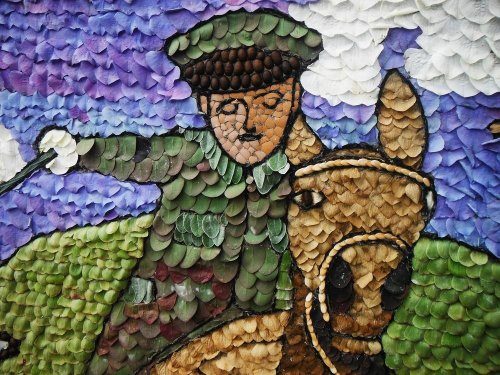 Жители деревни берут большие деревянные доски, покрывают их глиной и вдавливают в нее лепестки цветов, веточки, семена и другие предметы природного происхождения, чтобы воплотить сцены из Библии или сказок. Эти доски затем используются для украшения местных колодцев и источников.