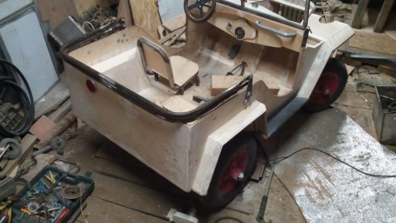 Заботливый отец из Твери решил построить детский электромобиль для сына. Изначально он хотел сделать багги, но просмотрев множество вариантов, было решено остановиться на советском военном внедорожнике ГАЗ-67Б.