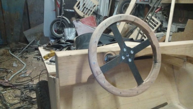 Руль из листового металла толщиной 2мм, по ободу будет наклепываться бакелитовая фанера, дуб или красное дерево