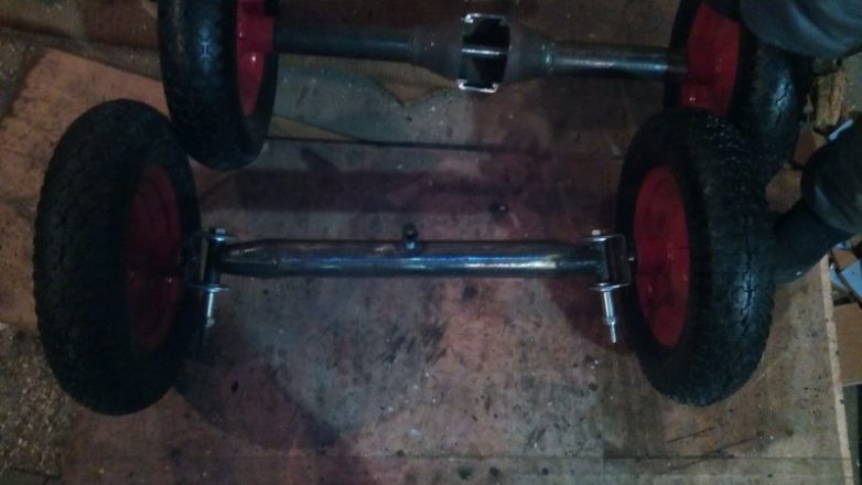 Поехал в стройматериалы купил 4 колёса для садовой тачки на подшипниках. Профильная труба 15х30 у меня была. Товарищ дал пруток ф20мм 2м, купил ступичные гайки от классики 20х1.5, что-то было в гаражном хламе.