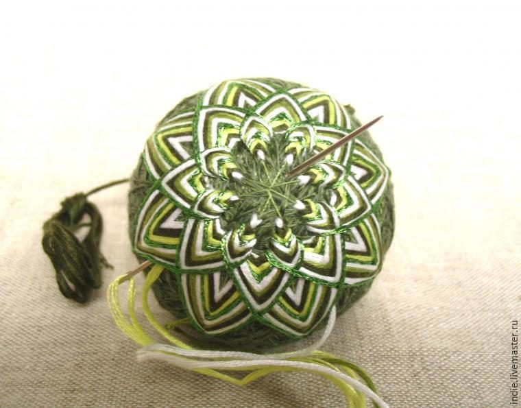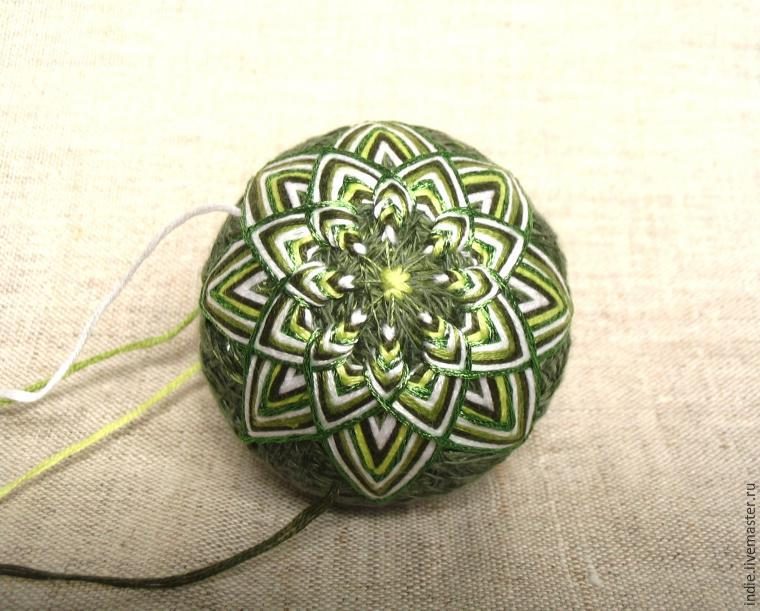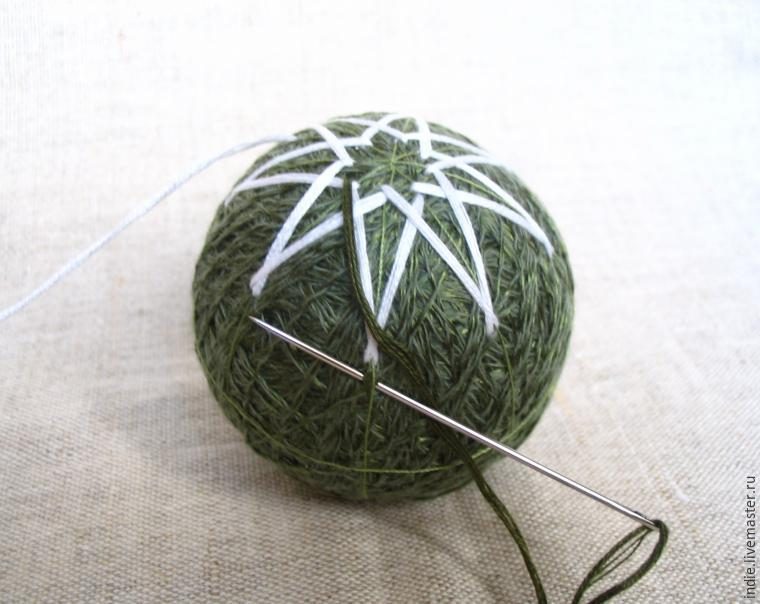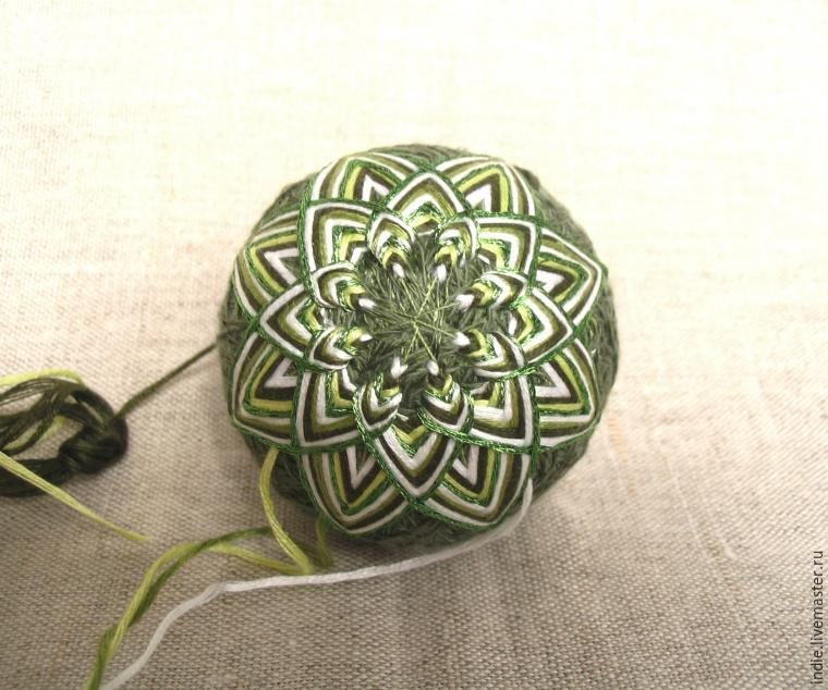 Предлагаю вашему вниманию мастер-класс по изготовлению необычных ёлочных украшений — нарядных шариков-темари.