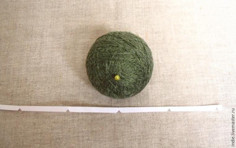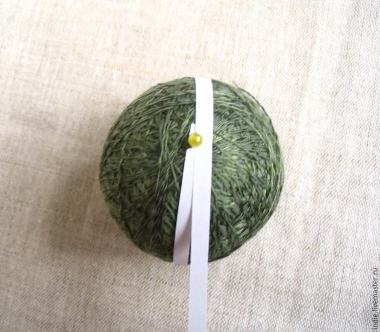 Готовую полоску снова зацепляем за булавку и обматываем вокруг шара.