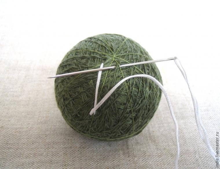 Важно, чтобы нитки были тонкими, тогда основа получится гладкой и вышивать по ней будет удобнее. Размер шара на ваше усмотрение. Я, обычно, делаю диаметром 5-6 см.