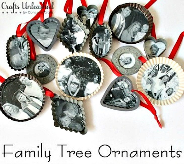 14. Игрушки с семейными фотографиями, и на период праздников ёлка превращается в фамильное древо.