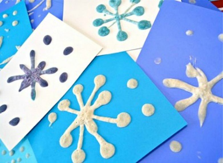 7. На бумаге можно рисовать не только акварелью, но и необычным материалом — к примеру, смешать муку, воду, и капнуть туда немного краски. Нарисовать различные фигуры, сушить до затвердения.