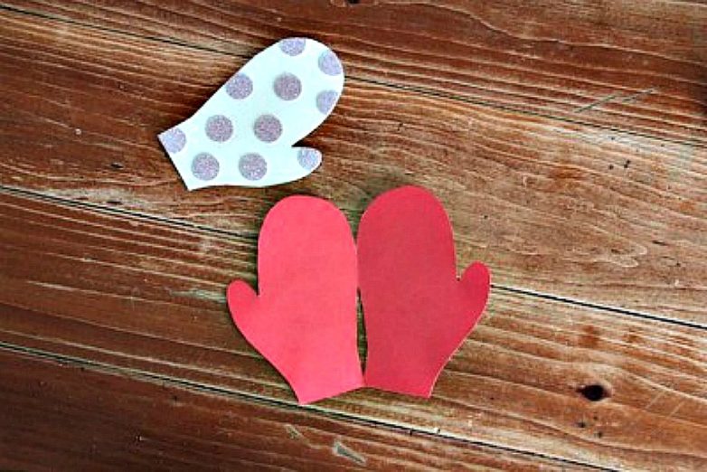 15. Варежки из картона и бумаги для крафта. Назначение -любое, по желанию, украшая различные предметы. Или на ёлку, если добавить нить.