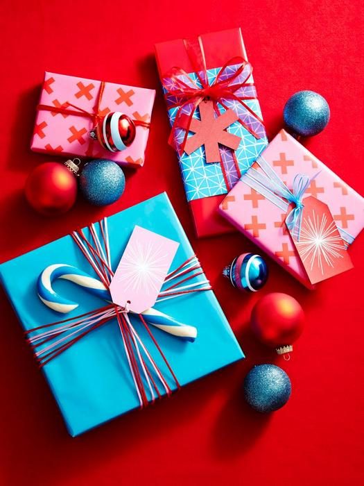 Оформление подарков яркой лентой.